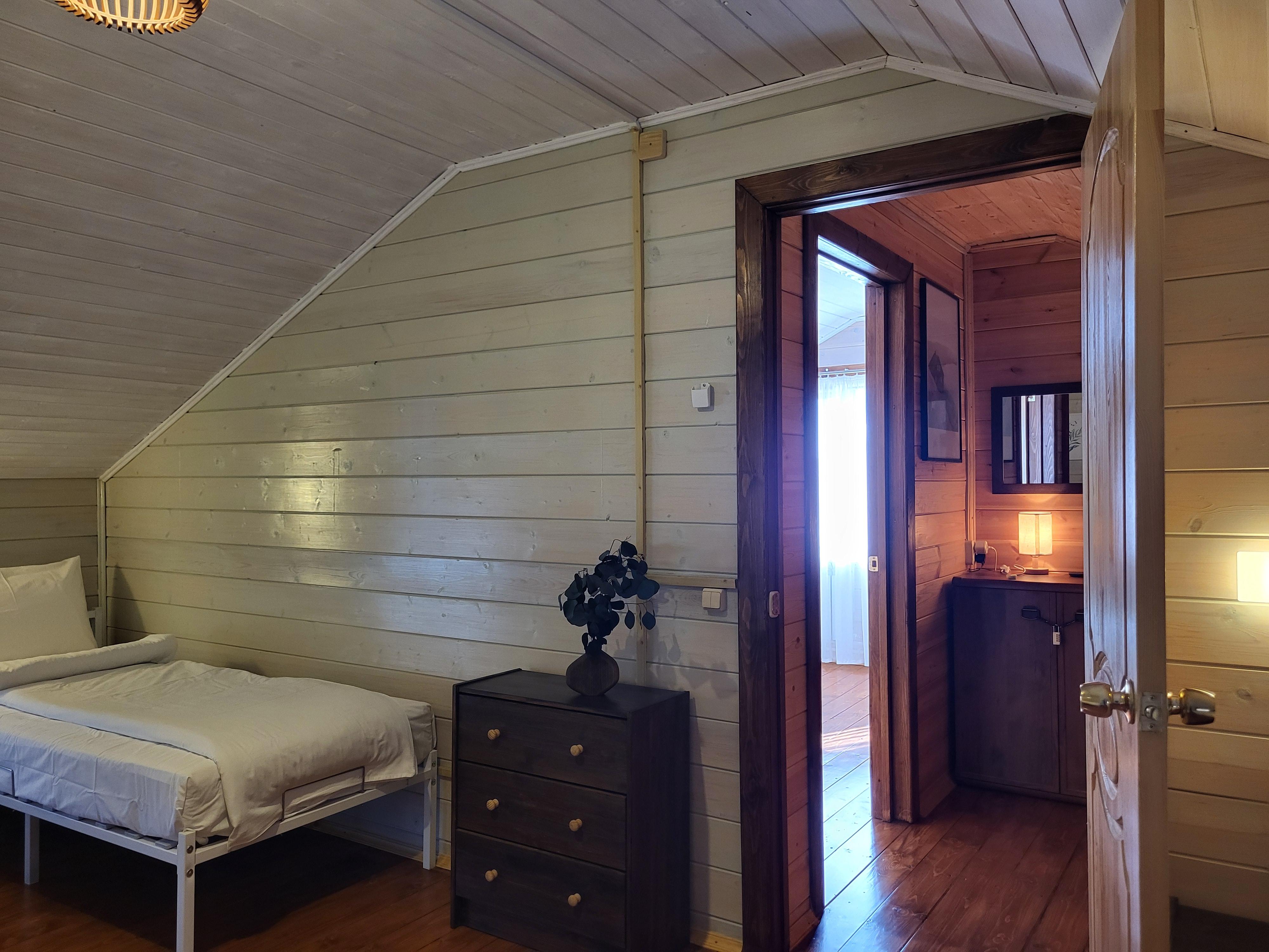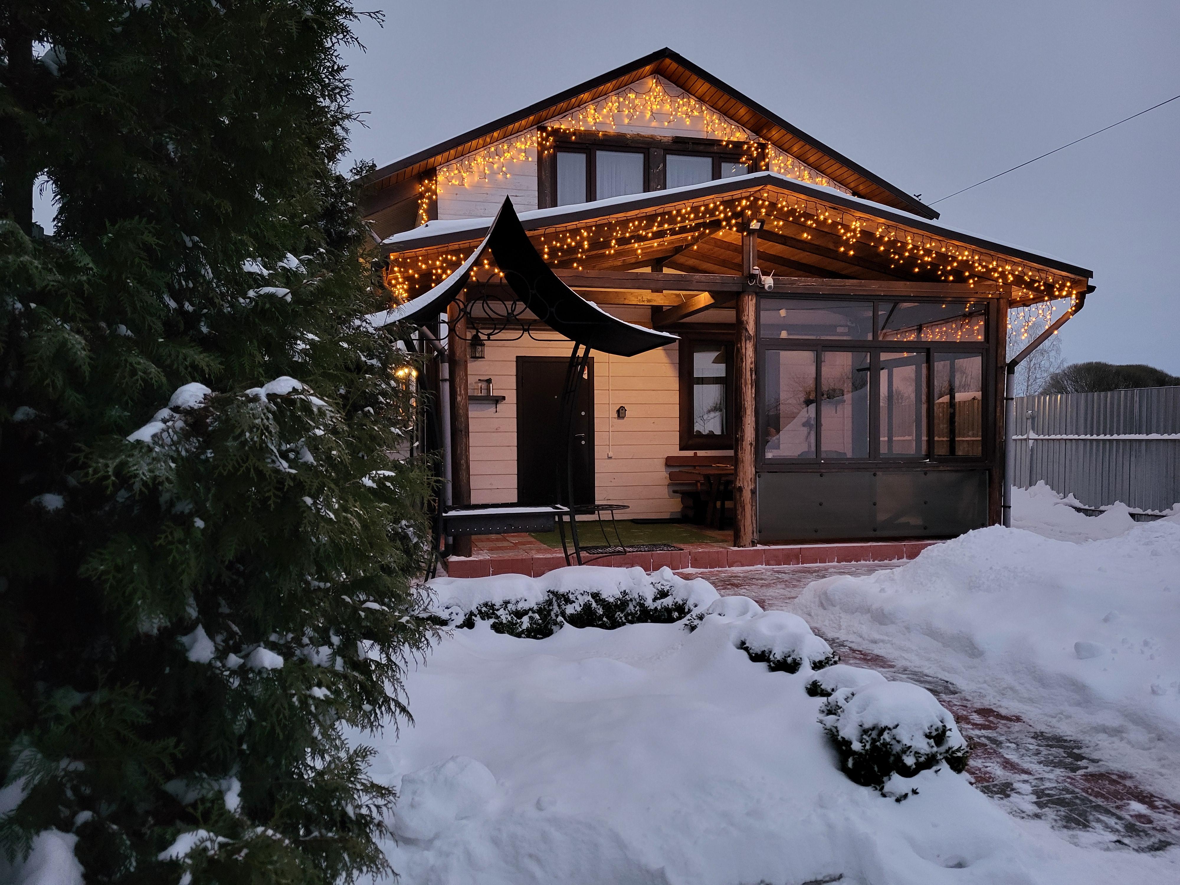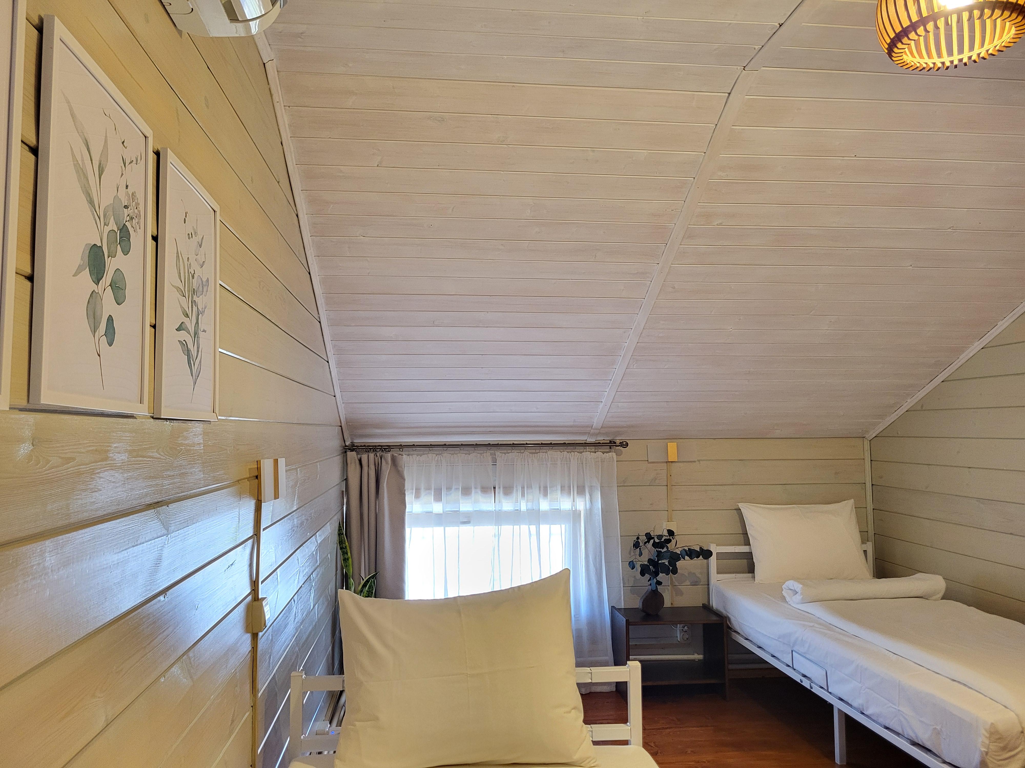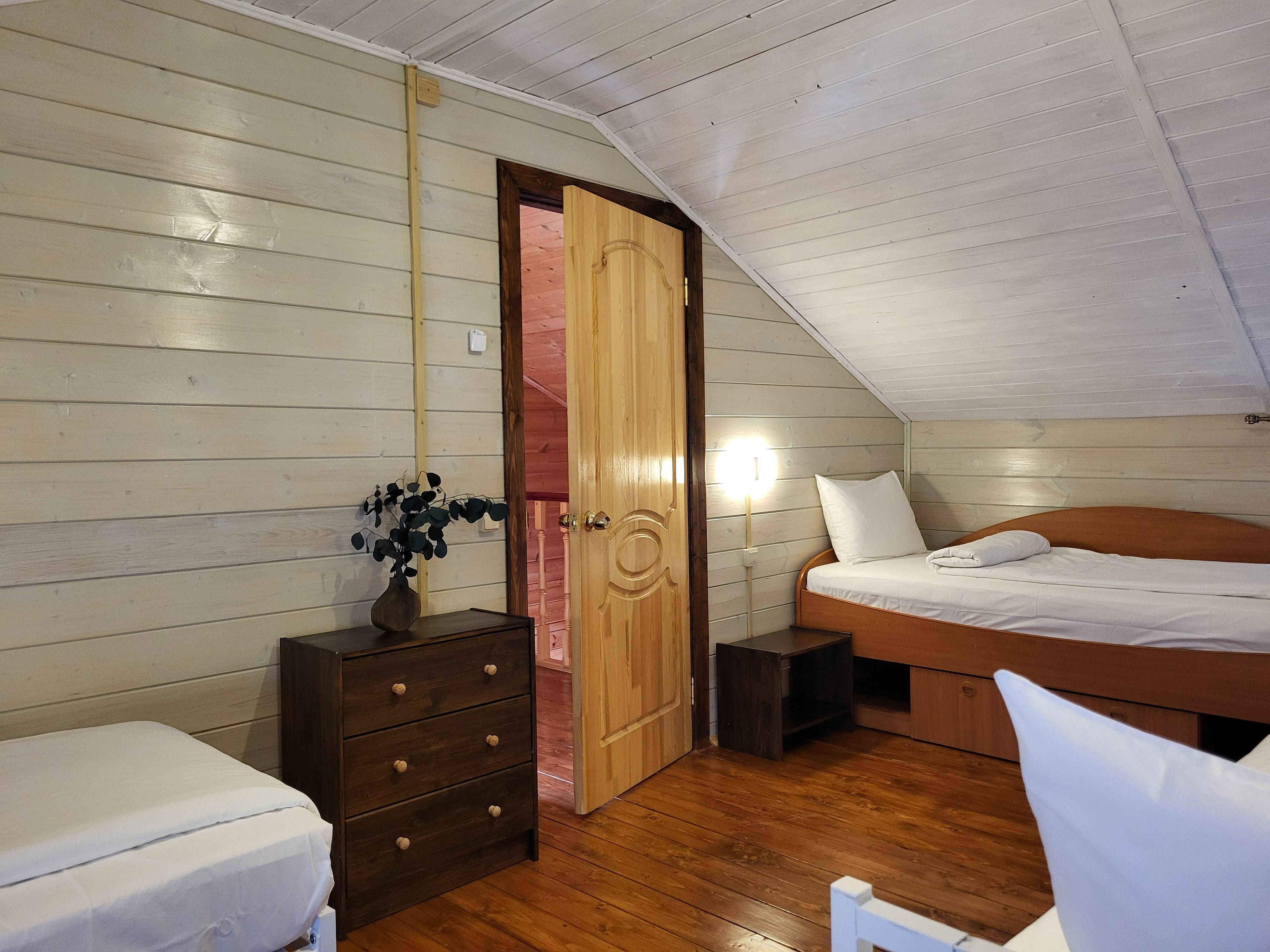 Количество спален -2 Количество гостей-5 Дополнительные места-2 Площадь 90 кв.м Цена зависит от сезона и дней недели. Подробнее в календаре Двухэтажный коттедж имеет собственную парковку для 2 авто, застекленную террасу с мебелью, мангальную зону. На первом этаже находится кухня-гостиная, сауна, душевая и санузел. На втором этаже 2 спальни с двуспальной кроватью и тремя односпальными. В гостиной можно разложить диван в двуспальное место. По предварительному запросу для детей до 3-х лет бесплатно предоставляем детскую кроватку-манеж. Дом укомплектован всеми необходимыми удобствами для комфортного проживания. У нас белоснежное постельное белье и полотенца высокого качества. Пользование сауной бесплатно и не ограничено по времени. Помещение парной растапливается дровами за 40-50 минут. Приветственная вязанка дров в подарок. Запрещено: • использование банных веников • проведение шумных вечеринок и мероприятий • курение во всех помещениях дома • проживание незаявленных при бронировании гостей Мы не оказываем гостиничные услуги, только временное размещение.