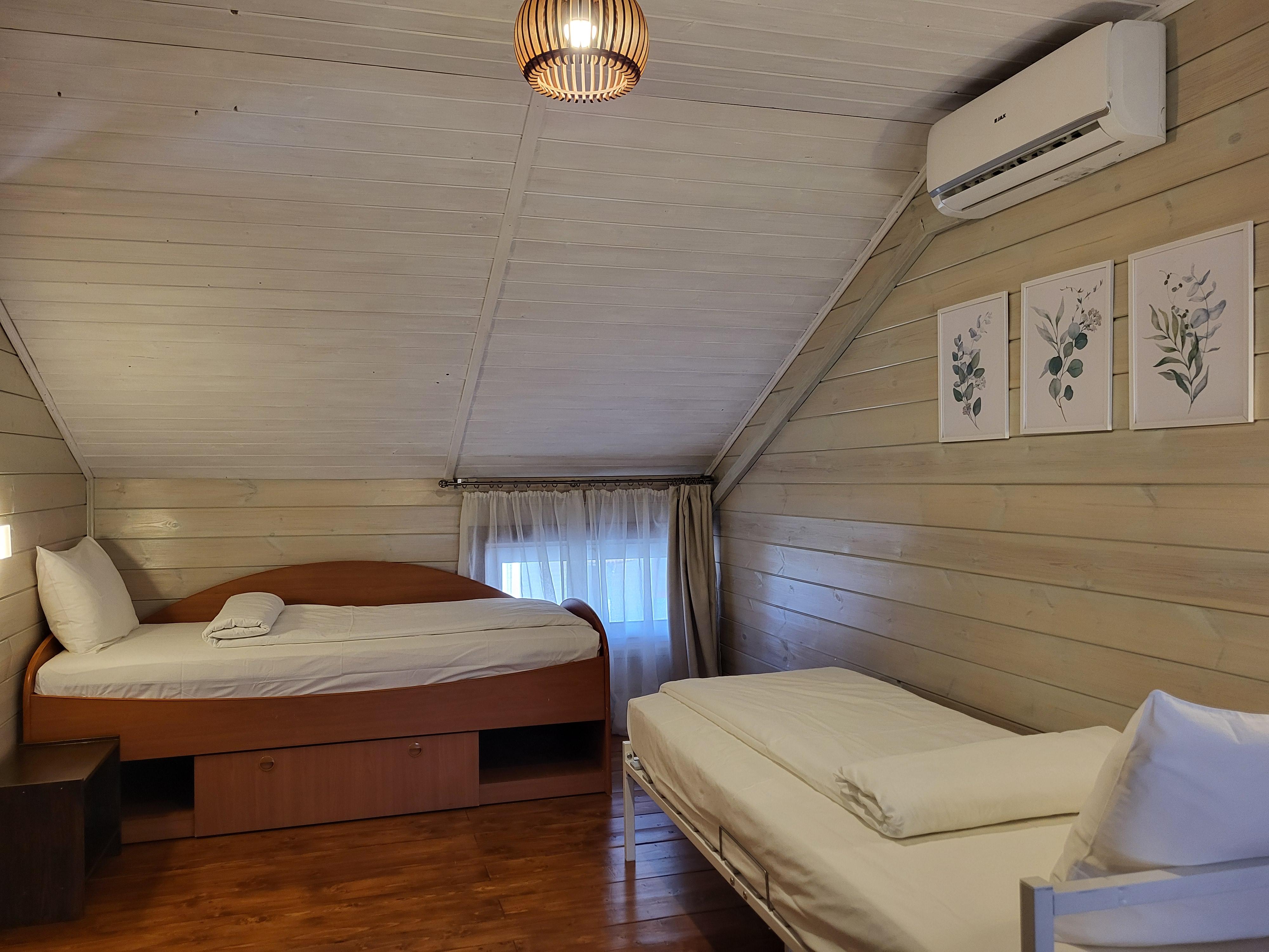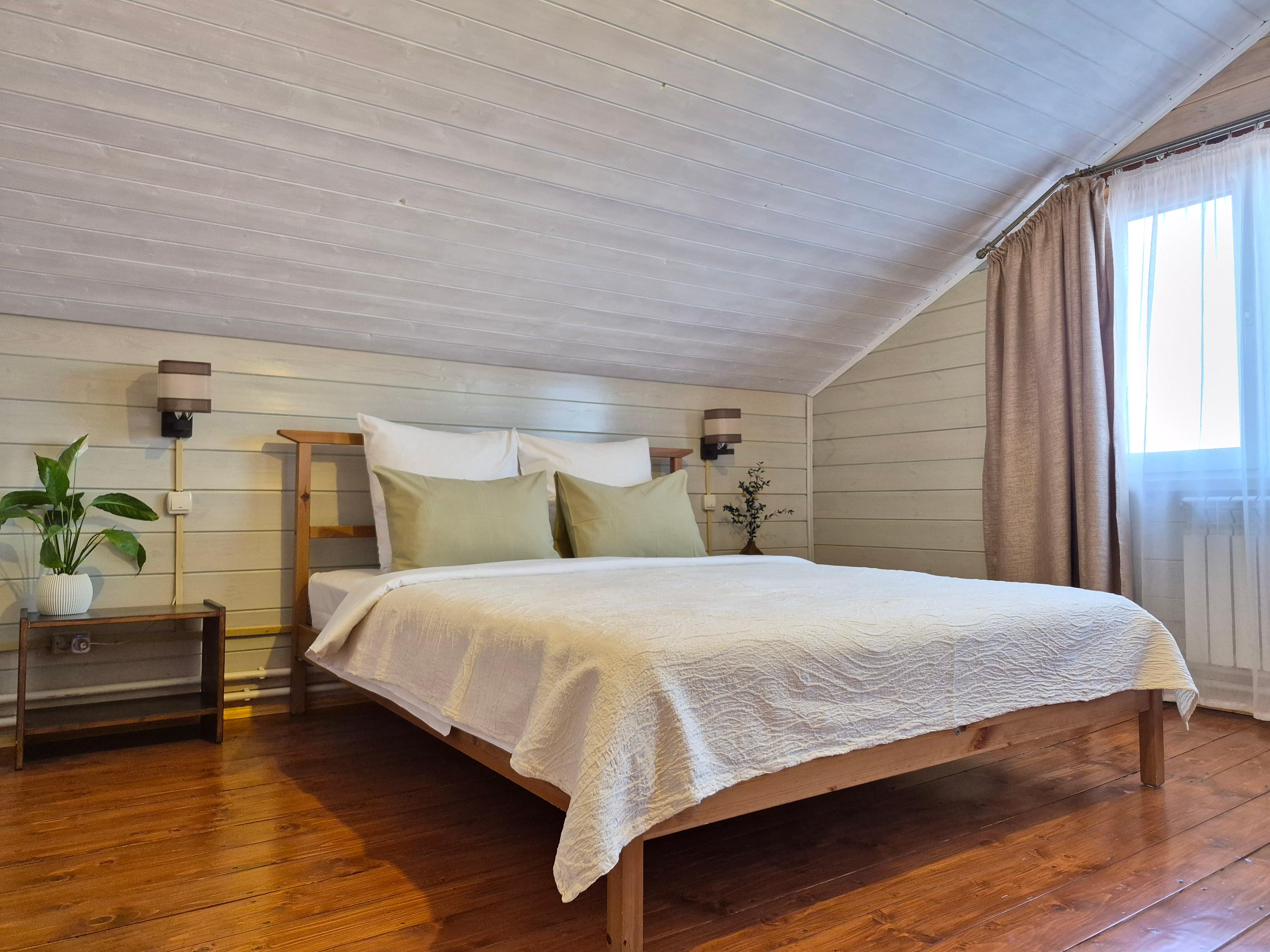 Площадь-90кв.м Количество спален -2 Основных мест-5 Дополнительные места-2 Двухэтажный коттедж имеет собственную парковку для 2 авто, застекленную террасу с мебелью, мангальную зону. На первом этаже находится кухня-гостиная, сауна, душевая и санузел. На втором этаже 2 спальни с двуспальной кроватью и тремя односпальными. В гостиной можно разложить диван в двуспальное место. По предварительному запросу для детей до 3-х лет бесплатно предоставляем детскую кроватку-манеж. Дом укомплектован всеми необходимыми удобствами для комфортного проживания. У нас белоснежное постельное белье и полотенца высокого качества. Пользование сауной бесплатно и не ограничено по времени. Помещение парной растапливается дровами за 40-50 минут. Приветственная вязанка дров в подарок. Запрещено: • использование банных веников • проведение шумных вечеринок и мероприятий • курение во всех помещениях дома • проживание незаявленных при бронировании гостей Мы не оказываем гостиничные услуги, только временное размещение.